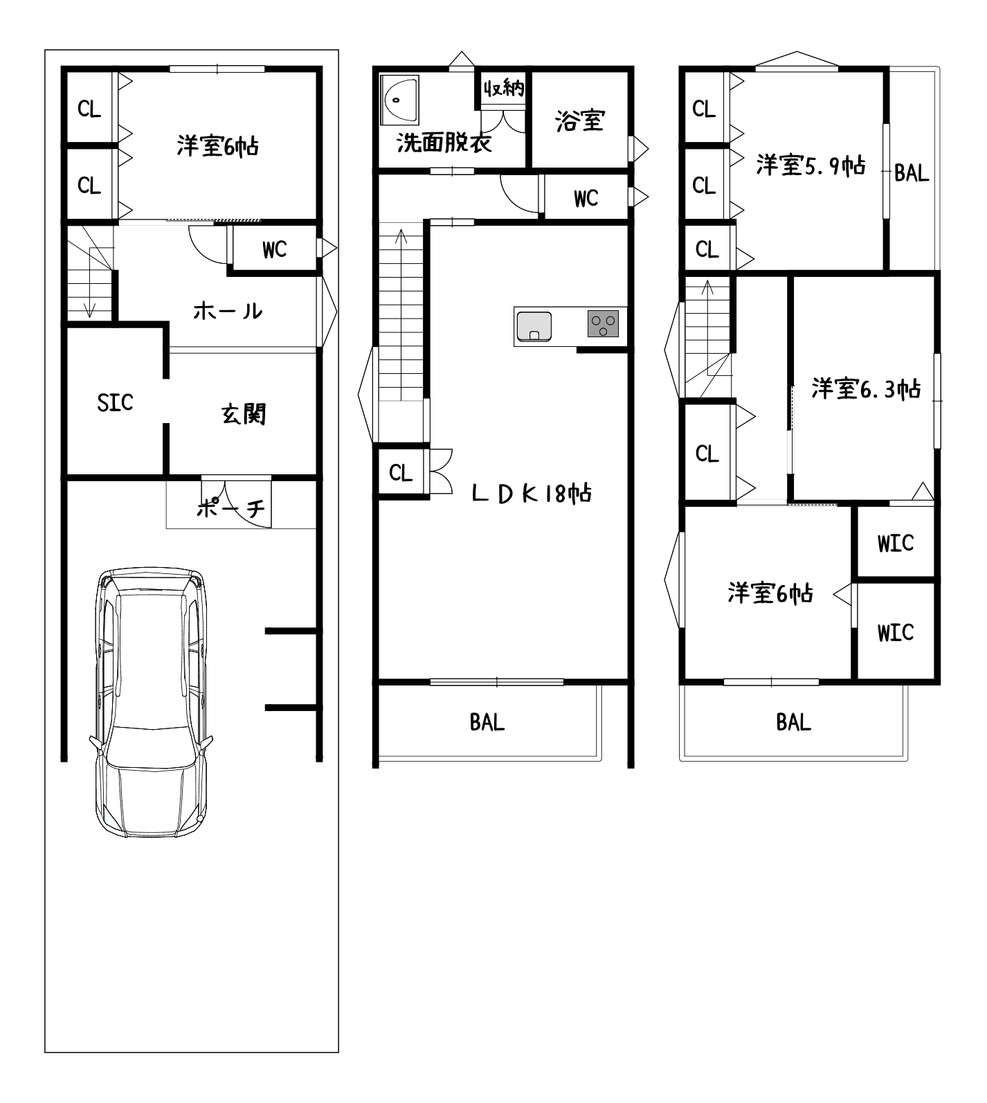 | 土地面積 | 68.59㎡~86.37㎡ | 建物面積 | 105㎡~ |